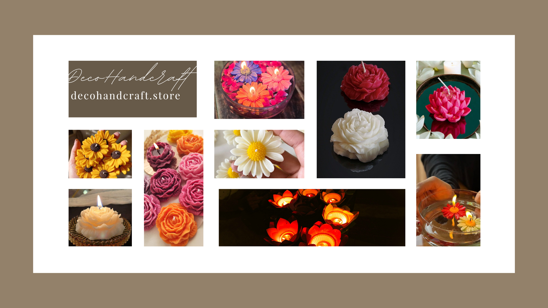 Deco Handcraft is your destination for beautifully handcrafted décor. We specialize in flower-shaped scented candles, artistic electronic lamps, and unique handmade creations designed to add warmth, fragrance, and charm to your living spaces. Every piece is crafted with love, creativity, and attention to detail — made to brighten your home and your everyday moments.